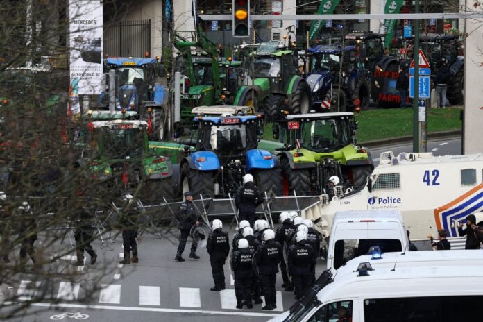 Eκατοντάδες τρακτέρ στους δρόμους πριν την έναρξη της Συνόδου Κορυφής των ηγετών της Ευρωπαϊκής Ένωσης