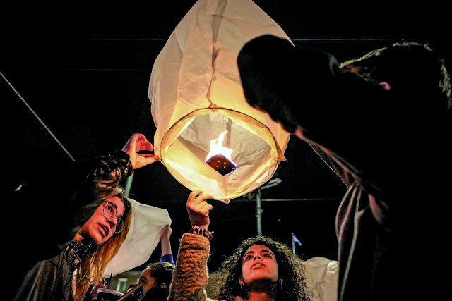 People release a paper lantern in memory of victims during a protest over Greece's 2023 train crash outside parliament, as political leaders debate inside, in Athens, Greece, March 5, 2025. REUTERS/Louisa Gouliamaki TPX IMAGES OF THE DAY