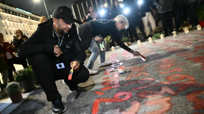 Η συγκέντρωση κορυφώθηκε με συγγενείς των θυμάτων, μεταξύ των οποίων και ο Πάνος Ρούτσι, να γράφουν ξανά τα ονόματα, με κόκκινη μπογιά, μπροστά από τη Βουλή.