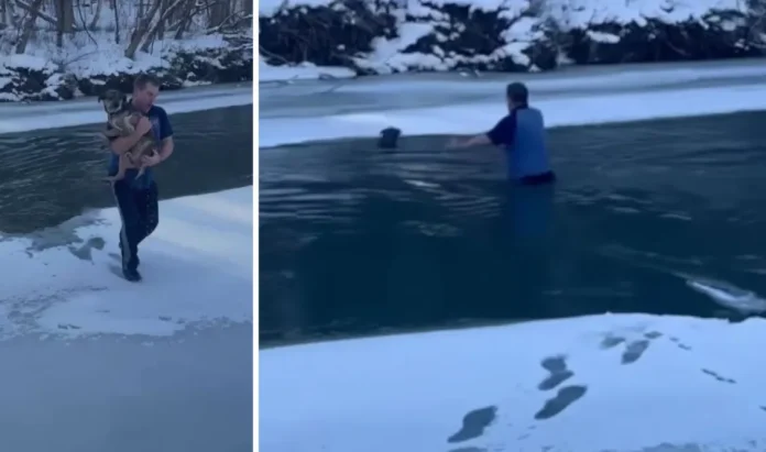Βούτηξε σε παγωμένο ποτάμι για να σώσει έναν σκύλο – Η συγκινητική πράξη που έγινε viral