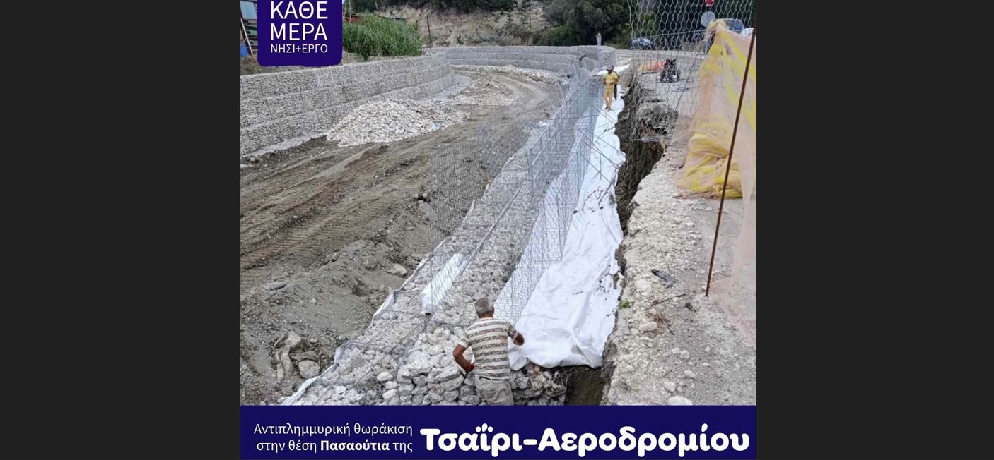 Σήμερα, τα έργα στην θέση Πασαούτια αυτής της οδού έχουν προχωρήσει πολύ και όπως σε όλα τα μέτωπα που ταυτόχρονα δουλεύουμε, η πρόοδος μας δίνει δύναμη. Δύναμη για την συνέχεια στα αντιπλημμυρικά έργα, στο νησί που ιστορικά δοκιμάζεται περισσότερο απο οποιοδήποτε άλλο από πλημμυρικά φαινόμενα και στο οποίο το τελευταίο μόνο διάστημα είτε έχουν ήδη ολοκληρωθεί, είτε βρίσκονται σε εξέλιξη τα περισσότερα και μεγαλύτερα αντιπλημμυρικά έργα στην ιστορία του.