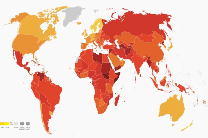 Ο παγκόσμιος μέσος όρος έχει κολλήσει στο θλιβερό 43, ενώ ακόμη και χώρες με παραδοσιακά υψηλές επιδόσεις, όπως η Σουηδία (81) και η Νορβηγία (80), κατέγραψαν τη χαμηλότερη βαθμολογία τους.