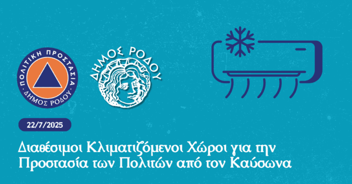 Λόγω των αυξημένων θερμοκρασιών, ο Δήμος Ρόδου σε συνεργασία με το Αυτοτελές Γραφείο Πολιτικής Προστασίας διαθέτει κλιματιζόμενους χώρους σε όλες τις Δημοτικές Ενότητες, προκειμένου να διευκολυνθούν οι πολίτες που χρειάζονται ένα ασφαλές και δροσερό περιβάλλον κατά τη διάρκεια της ημέρας.
