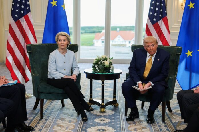 Η πρόεδρος της Κομισιόν και ο πρόεδρος των ΗΠΑ συναντήθηκαν στη Σκωτία, στο θέρετρο γκολφ που διαθέτει ο Ντόναλντ Τραμπ.