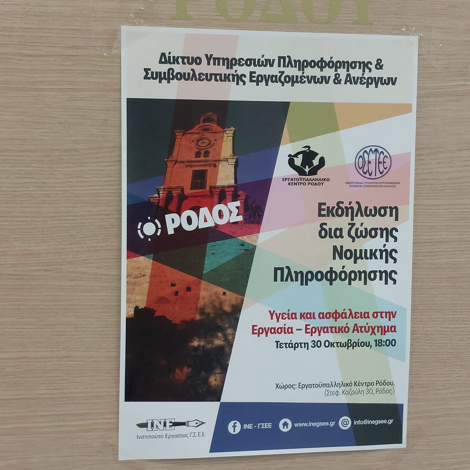 Από την πλευρά του Ινστιτούτου Εργασίας της ΓΣΕΕ Νοτίου Αιγαίου, ο πρόεδρος Σάββας Χατζησάββας επισήμανε τη σημασία της ευαισθητοποίησης των εργαζομένων για να διεκδικούν καλύτερες συνθήκες εργασίας. Στην εκδήλωση, τοποθετήθηκε επίσης η νομικός Άντα Σταμάτη, επιστημονική συνεργάτιδα του ΙΝΕ-ΓΣΕΕ, παρουσιάζοντας τη νομική διάσταση των θεμάτων ασφάλειας.