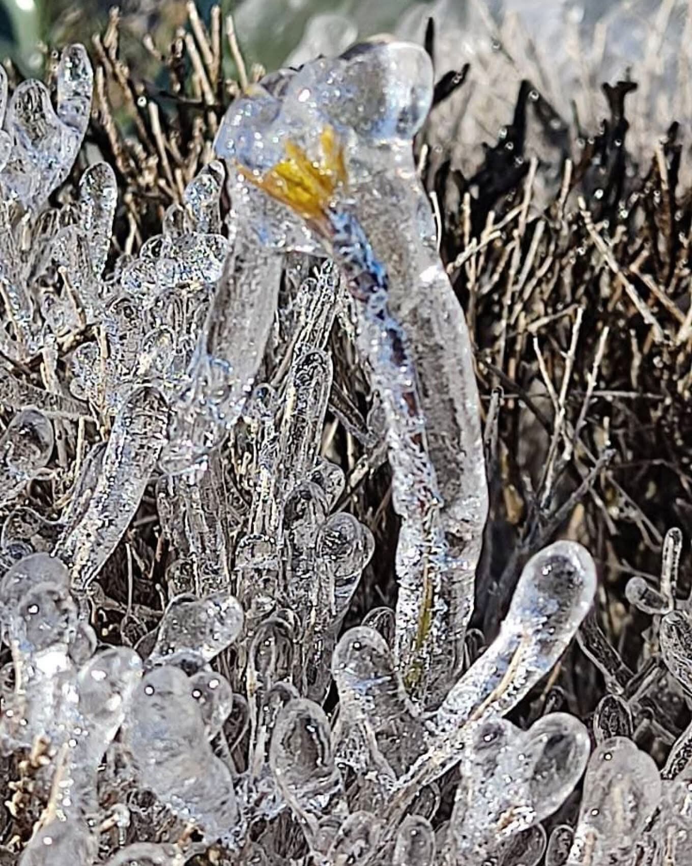 Αυτή η εικόνα δεν ήταν μόνο μια απλή απόδειξη της δύναμης του κρύου, αλλά και μια υπενθύμιση του πόσο ευάλωτη και ταυτόχρονα ανθεκτική μπορεί να είναι η φύση. Τα λουλούδια, αν και «παγωμένα», παρέμειναν όρθια, σαν να περιμένουν την επόμενη ανοιξιάτικη ζέστη για να ξαναζωντανέψουν.