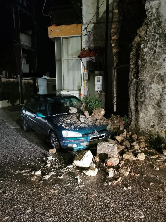 • Κρεμαστή: Στην περιοχή, όπως φαίνεται και στην κεντρική εικόνα, σημειώθηκε κατάρρευση τοίχου, με πέτρες και μπάζα να καταπλακώνουν αυτοκίνητο. Ευτυχώς, δεν υπήρξαν τραυματισμοί.