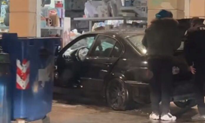 Σύμφωνα με πληροφορίες, ο 29χρονος οδηγός του Ι.Χ. έχασε τον έλεγχο του οχήματός του με αποτέλεσμα να περάσει στο πεζοδρόμιο και να καταλήξει πάνω στη τζαμαρία του καταστήματος.