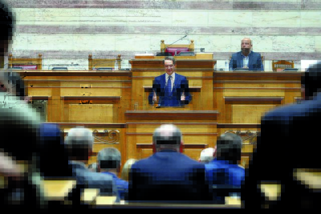 Ο προβολέας της κυβερνητικής και της κομματικής έδρας έχει στραφεί στο εσωτερικό για πρώτη φορά με τόση προσοχή στην πενταετία διακυβέρνησης του Μητσοτάκη και εν αναμονή ανάδειξης των αντιπάλων από τα αριστερά στις διαδικασίες του ΣΥΡΙΖΑ και του ΠΑΣΟΚ. Κι αυτό στο φόντο της κλιμακούμενης, εσωτερικής κριτικής η οποία φέρνει πια στο προσκήνιο συζητήσεις που μέχρι πρότινος, μέχρι το αναπάντεχο 28% της ευρωκάλπης συγκεκριμένα, εξελίσσονταν σε ηπιότερους τόνους και τελικά εκτονώνονταν στο παρασκήνιο: γκρίνιες, απορίες και αμφισβητήσεις για ταυτοτικά ζητήματα της ΝΔ και για κυβερνητικές πολιτικές οι οποίες απομακρύνουν το κόμμα, σύμφωνα με την ενιαία γραμμή της δεξιάς πτέρυγας της ΝΔ, από παραδοσιακά ακροατήριά του. Το Μαξίμου προτιμά να υποβαθμίζει αυτές τις ταλαντώσεις, εστιάζοντας στα «παραδοτέα» της καθημερινότητας. Στην πραγματικότητα χτυπούν καμπανάκι στο πρωθυπουργικό περιβάλλον που καλείται σε διαχείριση λεπτών εσωκομματικών ισορροπιών. Μιλώντας τόσο στο Mega από το γραφείο του στην Πειραιώς όσο και αργότερα από την εξέδρα μπροστά στο νεοκλασικό του αριθμού 18 της Ρηγίλλης, ο Μητσοτάκης υπερασπίστηκε τη στρατηγική διεύρυνσης της ΝΔ, με παραπομπές στον ιδρυτή της Κωνσταντίνο Καραμανλή. Το σχετικό μήνυμά του προς πάσα κατεύθυνση συνοψίζει άλλωστε η φράση «όσο πλατύτερα απλώνονται τα κλαριά της ΝΔ, τόσο δικαιώνουν την ισχύ που έχουν οι ρίζες της», καθώς ο ίδιος έκανε λόγο για μια «ευρύχωρη» παράταξη. «Κάποιες στιγμές, δεν θα συμφωνούν, προφανώς, όλοι σε όλα, όμως θα συμφωνούν οι πολλοί σε πολλά, ειδικά στα θέματα που είναι κρίσιμα για την πατρίδα», σημείωσε.