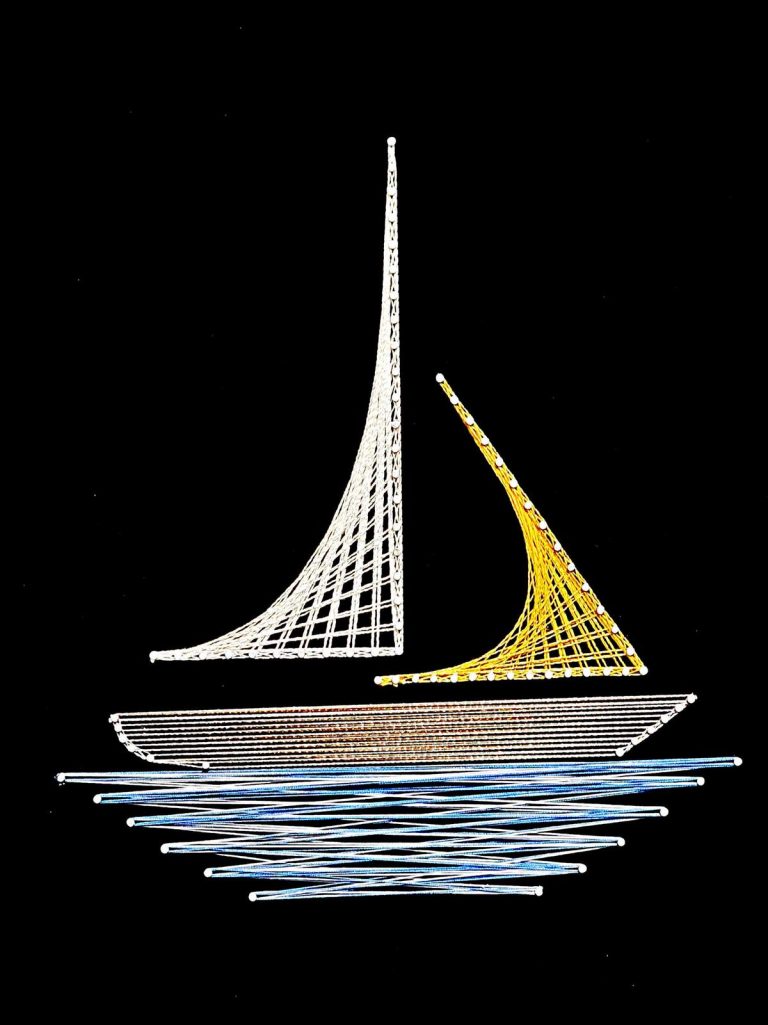 Το string art, γνωστό και ως «τέχνη του νήματος», βασίζεται στη δυναμική της γραμμής ως κύριο μορφοπλαστικό μέσο. Μέσα από την τοποθέτηση καρφιών σε μια επιφάνεια -συνήθως ξύλινη- και τη μεθοδική διαδρομή του νήματος ανάμεσα τους.