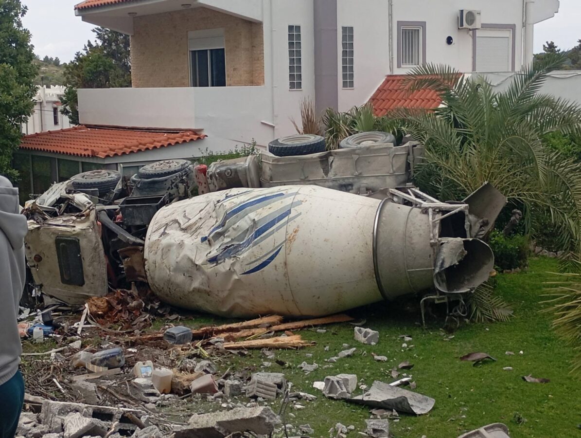 Μπετονιέρα γεμάτη τσιμέντο «εισέβαλε» σε αυλή σπιτιού