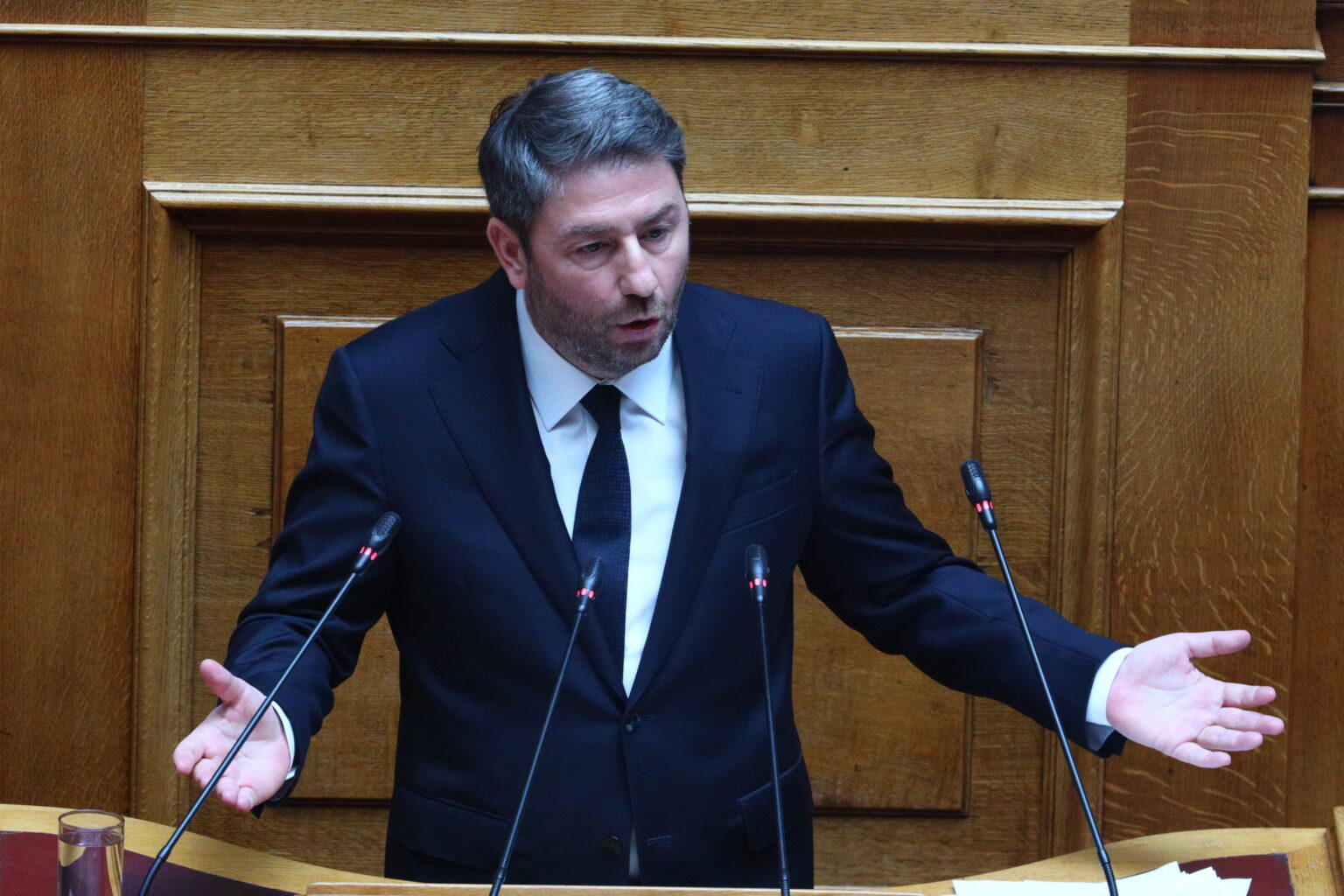 Ο Νίκος Ανδρουλάκης, διαδεχόμενος τον πρωθυπουργό στο βήμα της Βουλής, απηύθυνε ευθείες κατηγορίες στο Κυριάκο Μητσοτάκη πως ανέλαβε την ευθύνη να μην λογοδοτήσει ο ίδιος και τα κυβερνητικά στελέχη για τη τραγωδία των Τεμπών, αναφέροντας χαρακτηριστικά πως«παρακολουθήσαμε μια ακόμα παράσταση με τίτλο “Μητσοτάκης ο κυνηγημένος”. Σε μια προσπάθεια ο θύτης να γίνει θύμα».