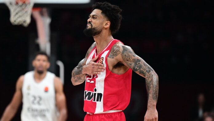 Με τον Τάιλερ Ντόρσεϊ σε… beast mode (37 πόντοι με 7/11 τρίποντα), ο Ολυμπιακός… κατάπιε την Ρεάλ Μαδρίτης με 102-88, κάλυψε το εις βάρος του -12 του πρώτου αγώνα και με ρεκόρ 24-12, έναντι 22-14 των Μαδριλένων, απολαμβάνει την μοναξιά της κορυφής… κλειδώνοντας, ουσιαστικά και το πλεονέκτημα της έδρας, δύο αγωνιστικές πριν το φινάλε της regular season.