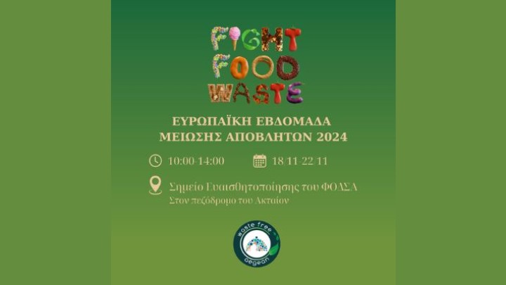 Ο Φορέας Διαχείρισης Στερεών Αποβλήτων Νοτίου Αιγαίου (ΦοΔΣΑ) συμμετέχει και φέτος στην Ευρωπαϊκή Εβδομάδα Μείωσης Αποβλήτων (EWWR), την κορυφαία ευρωπαϊκή πρωτοβουλία ευαισθητοποίησης για τη μείωση των απορριμμάτων. Υιοθετώντας το σύνθημα «Μην δίνεις τροφή στη σπατάλη», ο ΦοΔΣΑ ενθαρρύνει το κοινό να υιοθετήσει πρακτικές που μειώνουν τη σπατάλη τροφίμων, μια πρακτική με τεράστιο αντίκτυπο στο περιβάλλον και την οικονομία.