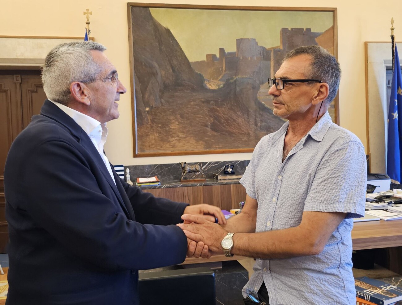 Τον Πρόεδρο του Σωματείου Εργαζομένων και μέλος της Διοίκησης της ΔΕΥΑ Ρόδου  Λευτέρη Καρανικόλα δέχτηκε σήμερα το απόγευμα στο γραφείο του ο Περιφερειάρχης Νοτίου Αιγαίου Γιώργος Χατζημάρκος.
