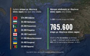 Μια έρευνα της διαΝΕΟσις αποκαλύπτει στοιχεία, τάσεις και απόψεις τόσο των προσφύγων και μεταναστών που ζουν στην Ελλάδα όσο και των Ελλήνων για αυτούς. Σύμφωνα με την τελευταία απογραφή, το 7% του συνολικού πληθυσμού της Ελλάδας αποτελείται από άτομα με ιθαγένεια άλλης χώρας, ποσοστό μειωμένο κατά 16% σε σχέση με το 2011. Οι Αλβανοί αποτελούν την πλειοψηφία των μεταναστών, με 374.900 άτομα το 2021, ξεπερνώντας κατά πολύ τους Βούλγαρους και Πακιστανούς, οι οποίοι αριθμούν περίπου 35.000 άτομα το καθένα.