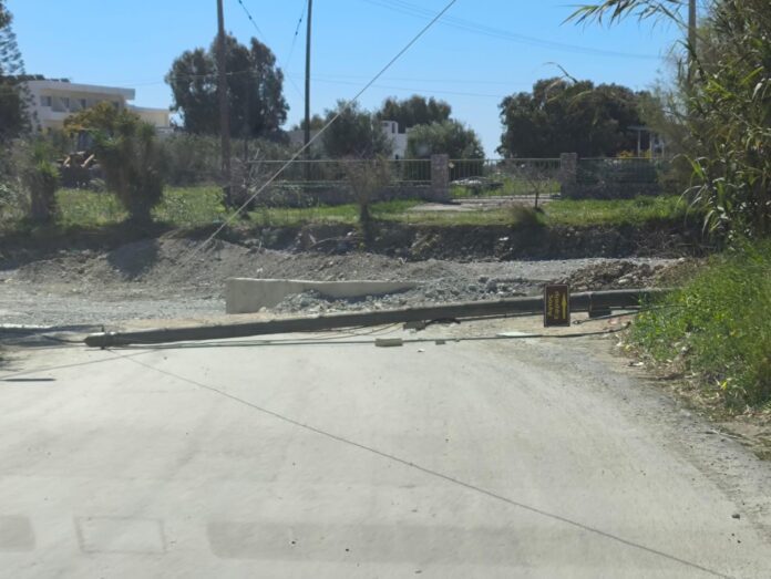 Προβλήματα στην κυκλοφορία προκαλεί η πτώση κολώνας της ΔΕΗ στην περιοχή Αφάντου, κοντά στην ιρλανδική διάβαση.