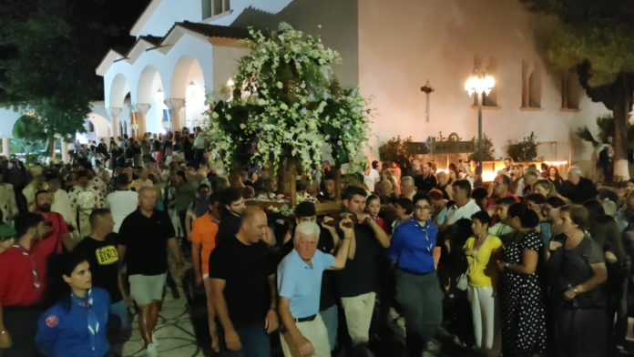 Χοροστατούντος του Μητροπολίτη Ρόδου Κυρίλλου μετά τον Πανηγυρικό Εσπερινό, εψάλησαν τα Εγκώμια της Παναγίας από νέες και νέους του χωριού. Με τη συμμετοχή πλήθους πιστών από όλο το νησί, μια και αποτελεί πανροδιακό προσκύνημα – παλιότερα και Πανδωδεκανησιακό αφού διέθετε και χώρους φιλοξενίας – ακολούθησε η περιφορά του καταστόλιστου Επιταφίου της Παναγίας στον κεντρικό δρόμο που οδηγεί στα χωριά της Δ. Ρόδου και σε παλιές γειτονιές. Γυναίκες έραιναν τον επιτάφιο της Παναγίας, επικαλούμενη την βοήθειά της.