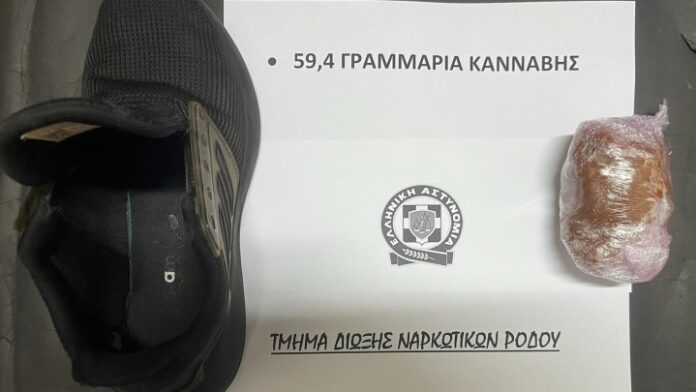 Το δέμα περιείχε ποσότητα ακατέργαστης κάνναβης βάρους 59,4 γραμμαρίων, επιμελώς κρυμμένη μέσα σε υπόδημα.