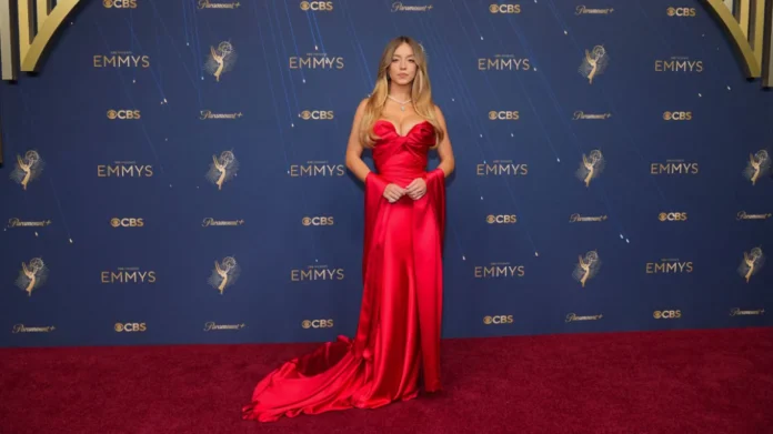 Η ηθοποιός έδωσε το «παρών» την Κυριακή 14 Σεπτεμβρίου, στην τελετή απονομής με μια στράπλες κόκκινη τουαλέτα με βαθύ ντεκολτέ και ιδιαίτερες λεπτομέρειες στο ύφασμα, με το ρούχο στο τέλος να σχηματίζει μακριά ουρά.