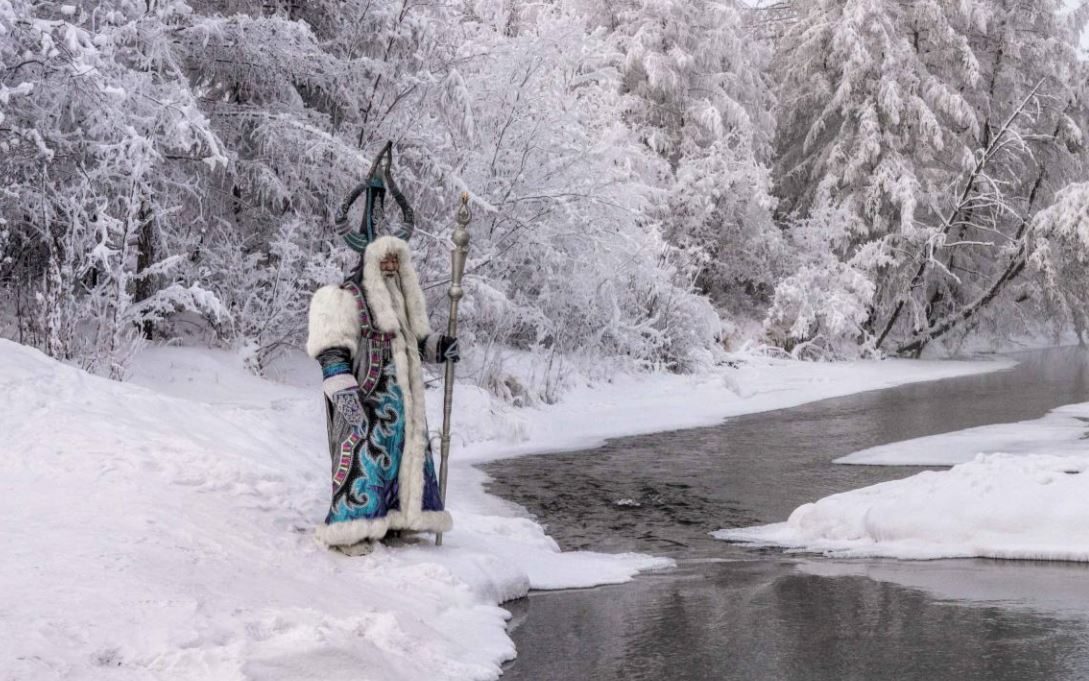 Ο Chyskhaan, ή Άρχοντας του Ψυχρού, ένας χαρακτήρας από τη λαϊκή παράδοση, παρακολουθεί τον ποταμό Indigirka στο Oymyakon