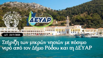 Ο Δήμος Ρόδου και η ΔΕΥΑΡ συμμετέχουν στο ειδικό πρόγραμμα έκτακτης υδροδότησης έτους 2025 για την κάλυψη των μικρών νησιών.