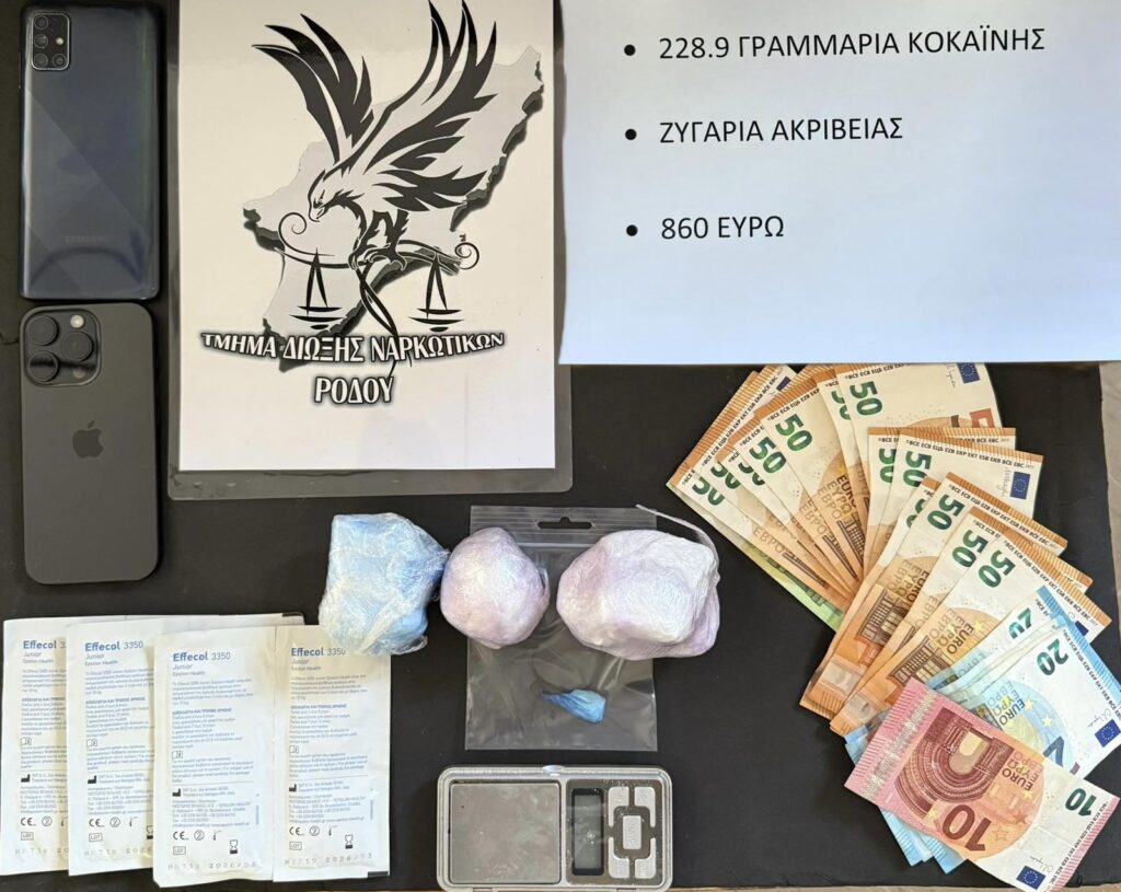 229 γραμμάρια κοκαΐνης, κατανεμημένα σε 3 συσκευασίες