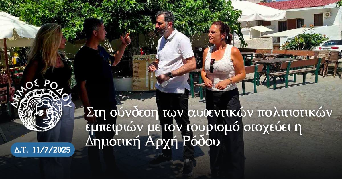 Με στόχο τη σύνδεση του Τουρισμού με τον Πολιτισμό και ειδικότερα την ανάδειξη των αυθεντικών πολιτιστικών εμπειριών που προσφέρουν τα χωριά της Ρόδου, ο Αντιδήμαρχος Τουρισμού και Πολιτισμού, Γιώργος Τόππος, επισκέφθηκε τις τοπικές κοινότητες του Ασκληπιείου, του Γενναδίου, της Λαχανιάς, του Μεσαναγρού, του Βατίου και της Ιστρίου, όπου είχε συναντήσεις με εκπροσώπους των τοπικών κοινοτήτων και των πολιτιστικών συλλόγων.