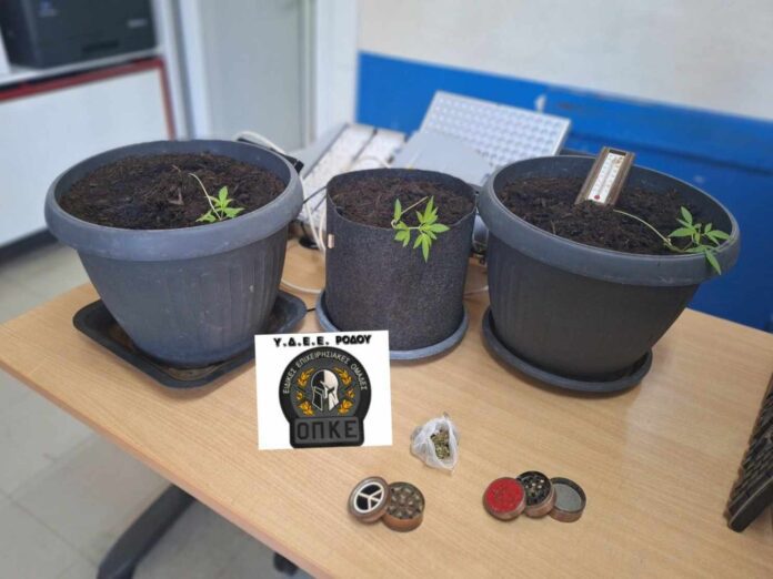 Από περιπολούντες αστυνομικούς της Ο.Π.Κ.Ε. συνελήφθησαν στη Ρόδο: Ένας 24χρονος ημεδαπός στην κατοχή του οποίου βρέθηκαν 1,5 γραμμ.ακατέργαστης κάνναβης κι ένας 49χρονος αλλοδαπός, στην κατοχή του βρέθηκαν 3,7 γραμμ. ακατέργαστης κάνναβης. Σε έρευνα στην κατοικία του διαπιστώθηκε πως καλλιεργούσε υπό ελεγχόμενες συνθήκες δενδρύλλια κάνναβης σε πρώιμο στάδιο ανάπτυξης. Σε βάρος του σχηματίσθηκε δικογραφία από το Αστυνομικό Τμήμα Αρχαγγέλου. Οι ναρκωτικές ουσίες κατασχέθηκαν.
