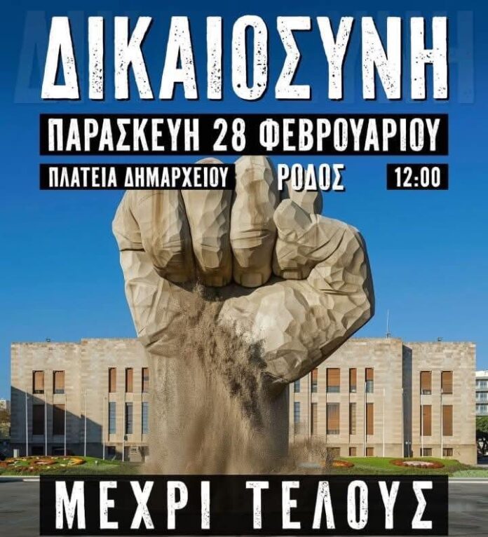 Η συγκέντρωση στη Ρόδο θα πραγματοποιηθεί στην πλατεία Δημαρχείου στις 12:00 το μεσημέρι.