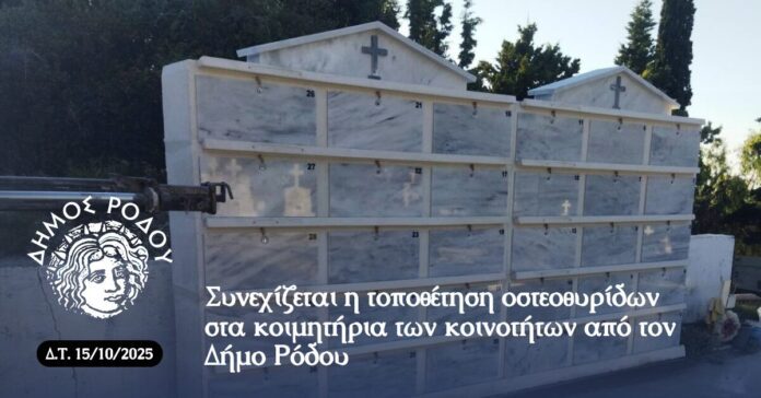 Στο πλαίσιο του προγραμματισμού, προβλέπεται η τοποθέτηση επιπλέον οστεοθυρίδων σε κοιμητήρια και άλλων δημοτικών κοινοτήτων κατά τα έτη 2026 και 2027.
