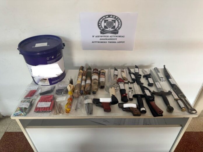 Αστυνομικοί του Α.Τ. Λέρου συνέλαβαν 28χρονο ημεδαπό, σε βάρος του οποίου σχηματίστηκε δικογραφία για παράνομη κατοχή όπλων, εκρηκτικών και πυροτεχνικών ειδών.