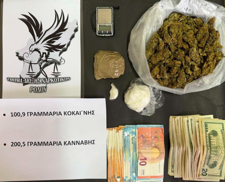 Στη σύλληψη ενός 35χρονου στη Ρόδο προχώρησαν οι αστυνομικές αρχές, καθώς βρέθηκε στην κατοχή του ποσότητα 100,9 γραμμαρίων κοκαΐνης και 200,5 γραμμαρίων κάνναβης, ενώ κατασχέθηκαν και χρηματικά ποσά σε διάφορα νομίσματα.