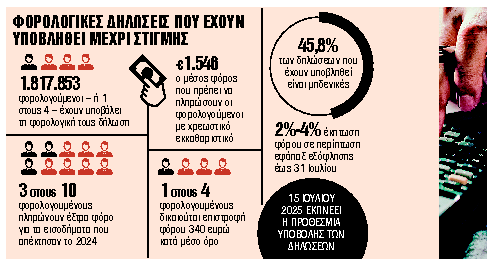 Ειδικά για τους φορολογουμένους που συμμετέχουν σε νομικά πρόσωπα ή νομικές οντότητες που τηρούν απλογραφικά βιβλία, η έκπτωση 2% ισχύει για δηλώσεις που θα υποβληθούν από 17 Ιουνίου έως και 31 Ιουλίου 2025.