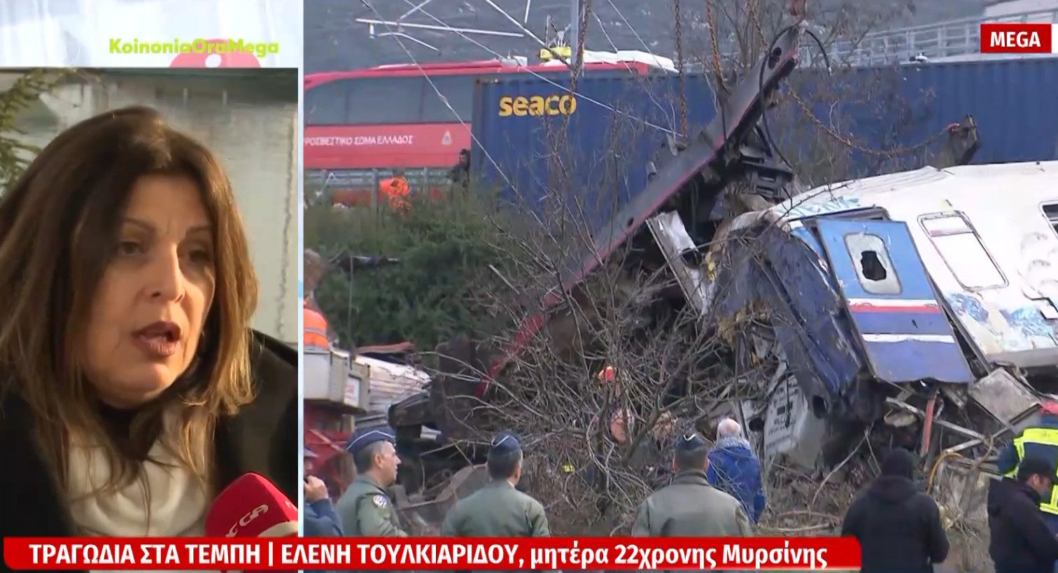 Για την σοκαριστική της εμπειρία από το βράδυ της 28ης Φεβρουαρίου του 2023 μίλησε η μητέρα της 22χρονης Μυρσίνης, η οποία βρισκόταν στο τρίτο βαγόνι με την φίλη της, Ελπίδα Χούπα. Η Μυρσίνη κατάφερε να επιβιώσει, ενώ η Ελπίδα έχασε τη ζωή της μετά την σύγκρουση.