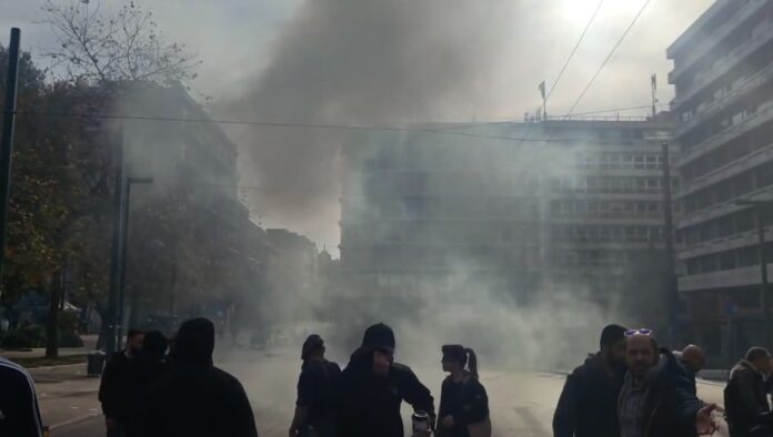 Με δακρυγόνα και χειροβομβίδες κρότους λάμψης «έπνιξαν» τα ΜΑΤ τη μεγαλειώδη συγκέντρωση για τα Τέμπη στο Σύνταγμα.