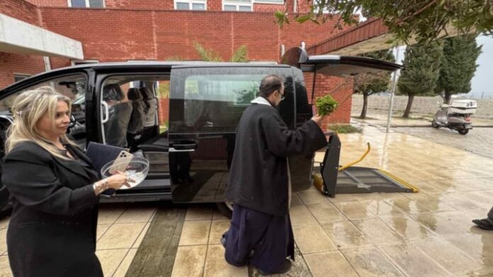 Τον αγιασμό του οχήματος τέλεσε ο πατέρας Παΐσιος, ιερέας του Ιερού Ναού Αγίων Αποστόλων, μεταφέροντας τις ευχές του για υγεία, ασφάλεια και δύναμη στο έργο του Συλλόγου.