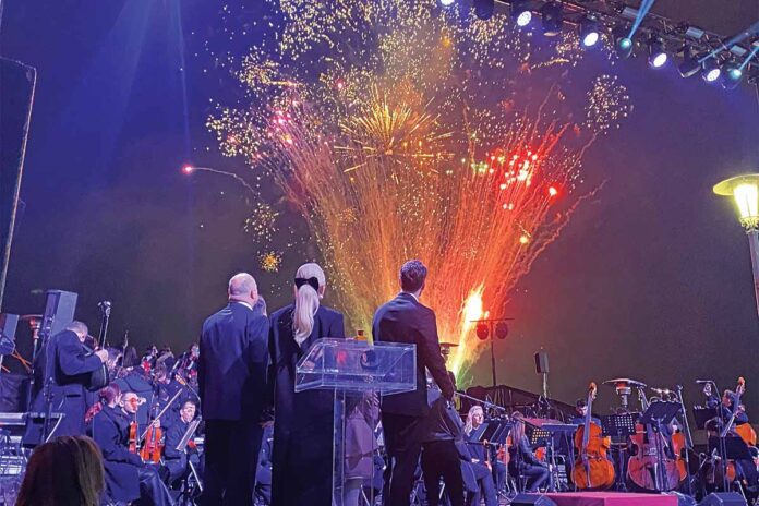 «Απόψε θα γίνει… της Πάολας» είπε ο Αχιλλέας Μπέος, υποδεχόμενος on stage τον Κωνσταντίνο Αργυρό, που άναψε το χριστουγεννιάτικο δέντρο του Βόλου, προχθές το βράδυ, μέσα σε μια λαοθάλασσα πολιτών.