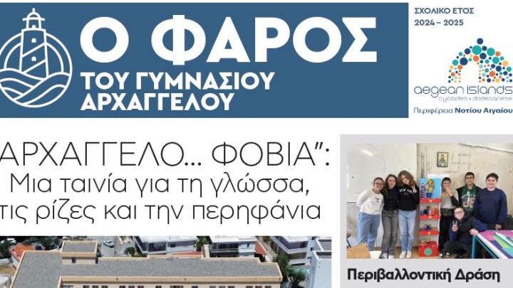 Ο «ΦΑΡΟΣ» των μαθητικών εφημερίδων ανάβει και φέτος, φωτίζοντας την παράδοση, τον τόπο αλλά και τις σύγχρονες ανησυχίες της νέας γενιάς, χάρη στη συνεργασία και την πολύτιμη βοήθεια της περιφέρειας Νοτίου Αιγαίου με την Περιφερειακή Διεύθυνση Εκπαίδευσης Νοτίου Αιγαίου.