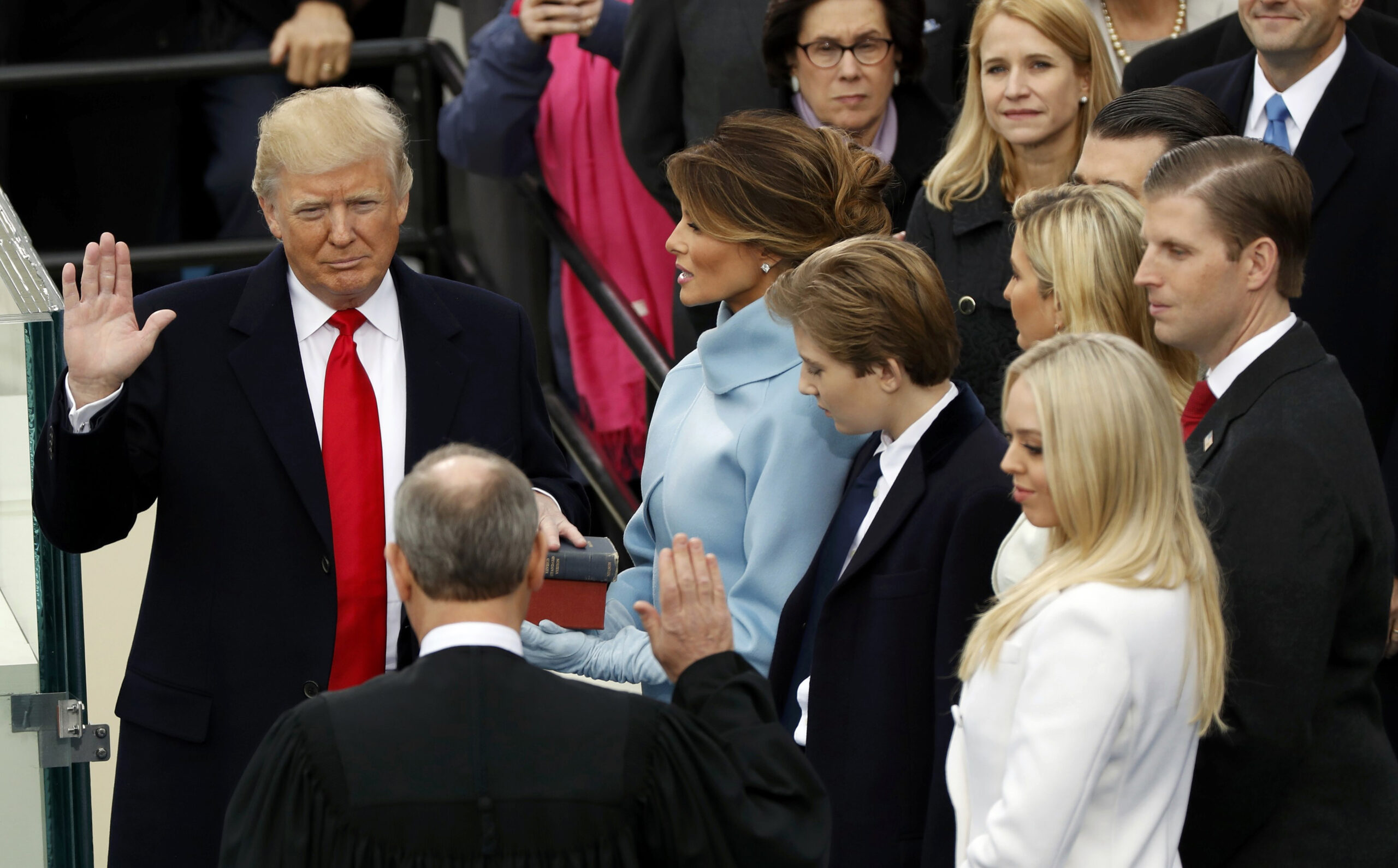 US President Donald Trump takes the oath of office with his wife Melania, and children Barron, Donald Jr., Eric, Ivanka and Tiffany at his side, during his inauguration at the U.S. Capitol in Washington, U.S., January 20, 2017. REUTERS/Kevin Lamarque
