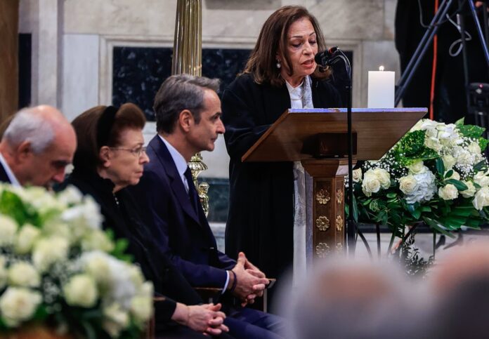 Με λόγια γεμάτα αγάπη και σεβασμό, η Χάρις Αλεξίου εκφώνησε τον επικήδειο λόγο για τη μεγάλη ερμηνεύτρια, συγκινώντας όσους παρευρέθηκαν στην τελετή.