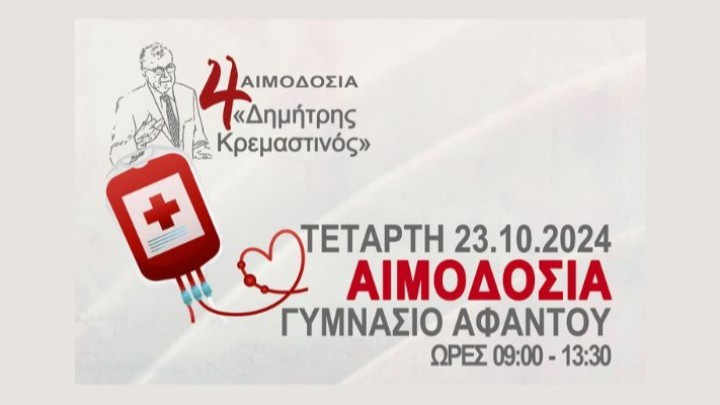 4η Εθελοντική Αιμοδοσία «Δημήτρης Κρεμαστινός»: Κάλεσμα αλληλεγγύης και ανθρωπιάς στο Γυμνάσιο Αφάντου